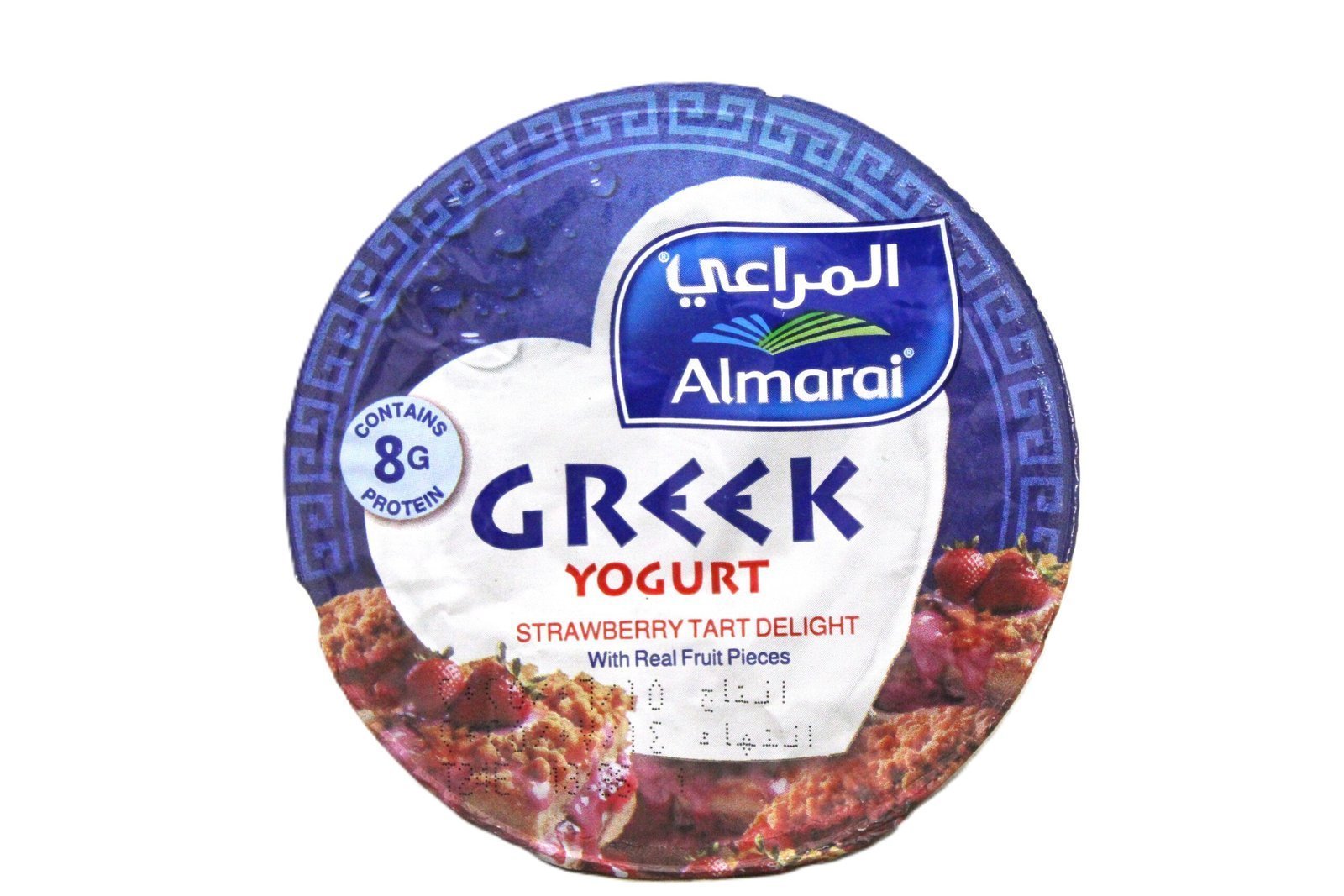 Almarai 8g Protein Strawberry Tart Delight Greek Yogurt with Real Fruits Pieces – artificial colors free 170 gr