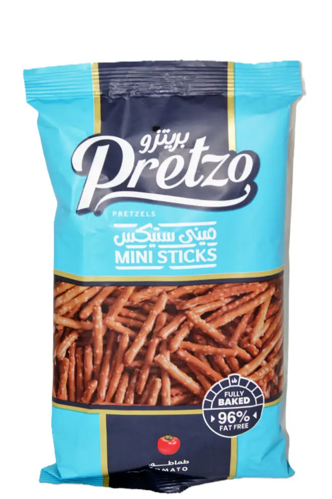 Pretzo Mini Baked Pretzel Sticks Tomato Flavor – preservatives free artificial colors free peanut free 70 gr