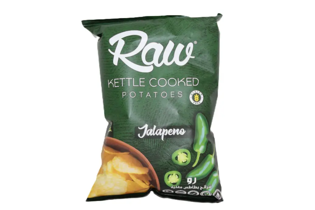 Raw Kettle Cooked Jalapeno Potato Chips – GMO free gluten free cholesterol free 30 gr