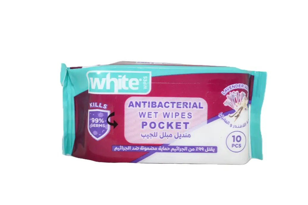 White Pocket Refreshing Antibacterial Wet Wipes Lavender & Vanilla Scent 10 wipes